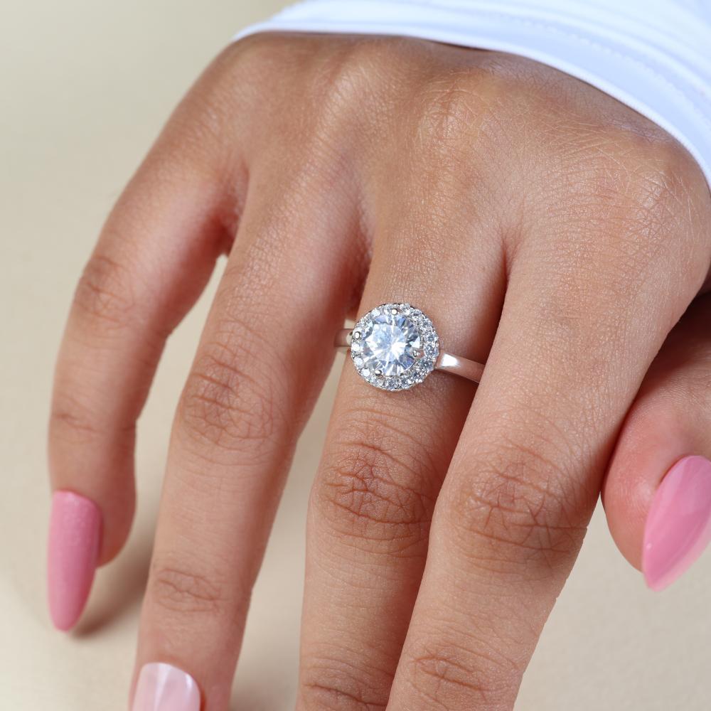 خاتم من الفضة عيار 925 ومطلي بالروديوم ، ومزين بأحجار الزركون بتقنية ترصيع مشابه للألماس